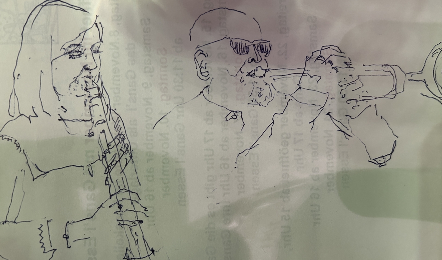 A drawing of the Virginia MacDonald – Stephane Belmondo Quintet’s performance at Seidl-Keller in Bruck an der Leitha